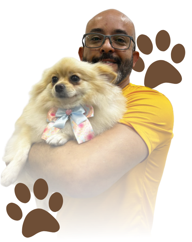 Mais de 20 anos trabalhando em clínicas e consultórios veterinários. Começou como auxiliar aos 14 anos e cresceu dentro do setor de banho e tosa, aprendendo técnicas que hoje são raras no mercado.
